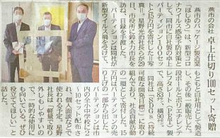 「段ボールでできた、飛沫防止パーテーション」燕市役所へ寄贈