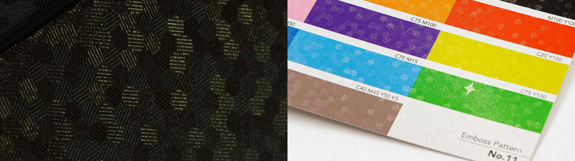 透明なニスを表面にコーティングすることで、こまかなエンボス調の凹凸を作り、
